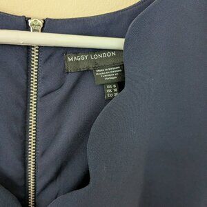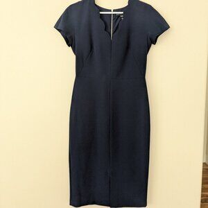 Navy Maggy London midi dress with scallop neckline, size 6 in good used condition