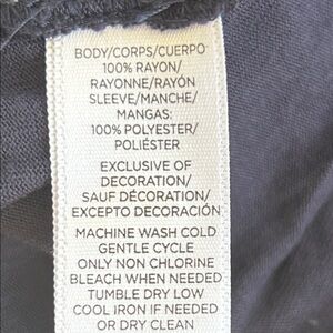 This navy mixed media top features a stylish design with delicate lace details. Elastic cuffs. Sleeves amd around neck are chiffon and rest is a soft jersey knit. Flowy style. Perfect for any occasion, it offers a comfortable and chic look. Excellent condition.