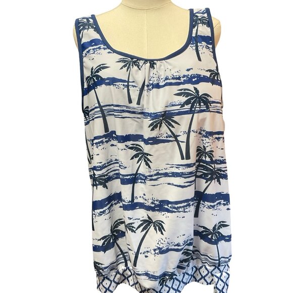 Navy/White Palm Tree Print Tankini Size: 3XL Material: 82% Polyamide, 18% Elastane Features: Molded Cups New & Unworn