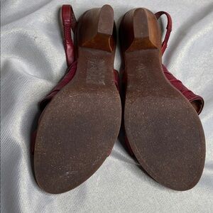 Women’s burnt red Naya ‘Alamosa’ Genuine Leather Heeled Slingback Dress Sandals.