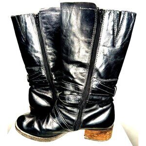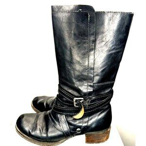 Naya Boots Women's 8 M Sabre Riding Tall Heels Zipper B3196L1001 Black Leather
