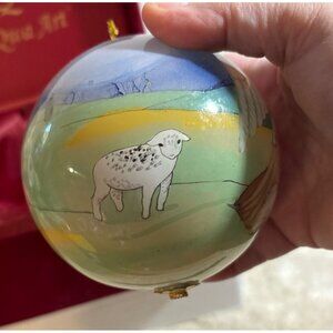 Ne Qwa Art Hand-Painted Glass Christmas Ornament Angel & Shepherd Red Velvet Box