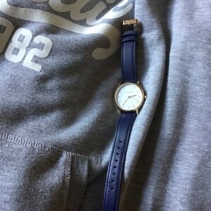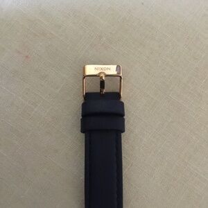 Nearly new rose gold Nixon watch with rich dark navy leather band. Mint condition. Only worn briefly 2 times. 34mm diameter The pics show it as being black so I took a pic (last one) of the true colour