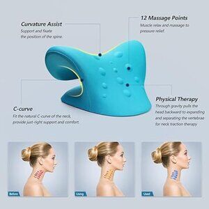 Tags: Neck stretcher, Cervical traction, Neck pain relief, TMJ relief, Posture corrector, Wellness, Health, Chronic pain relief, Physical therapy. Spine support. Neck support, Self care essentials, Pain relief device, Foam support, Health and wellness, Ergonomic support, Yoga props