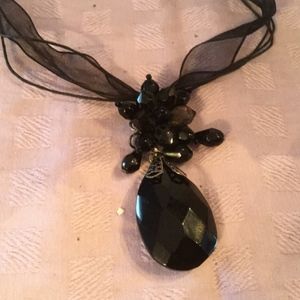 Black ribbon with black bead cluster with black drop jewel length13 in.