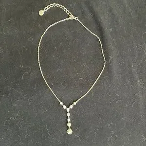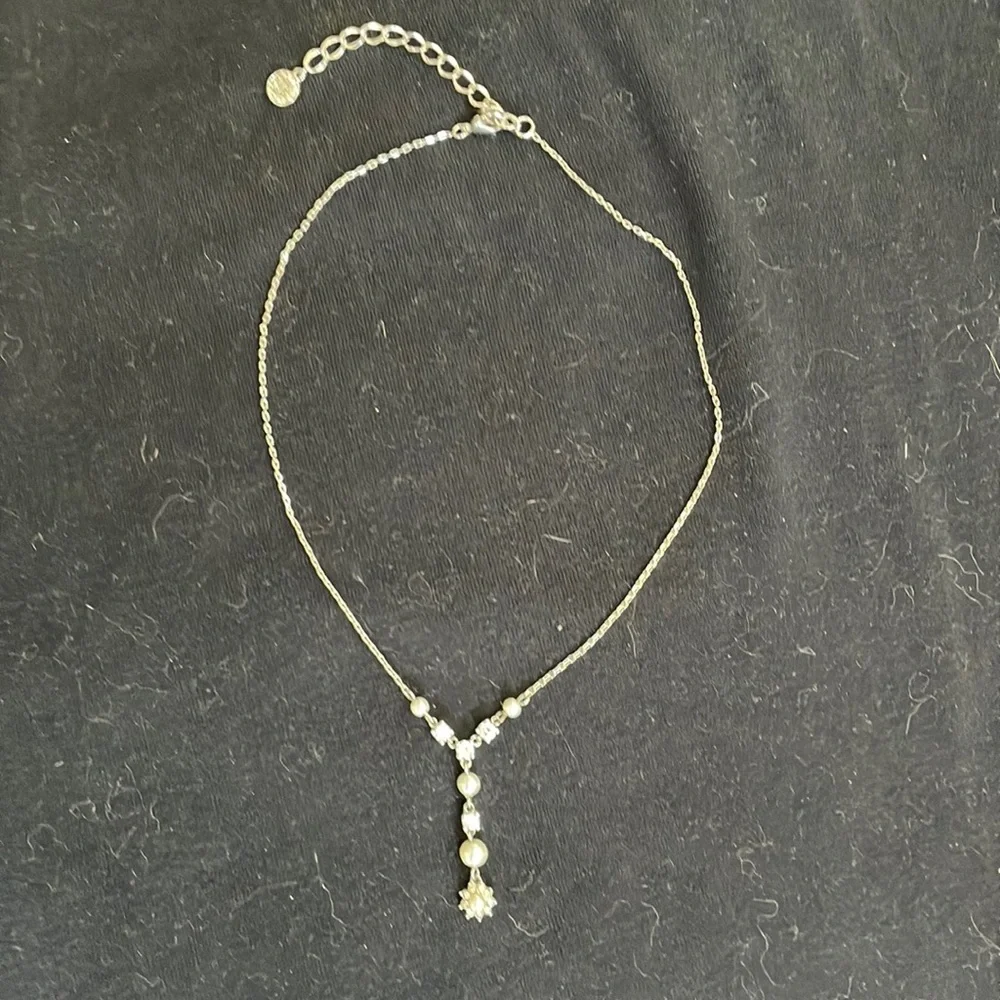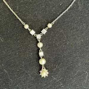Strass & pearls. Silver, or at least silver colour (Can’t grant any authenticity of the materials). Bought at Macy’s in NYC. Adjustable size.