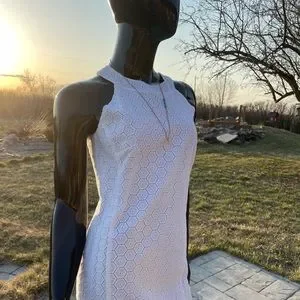 Delicate necklace with Infiniti circle at bottom, adorned with just a few simple blue beads. Stunning!