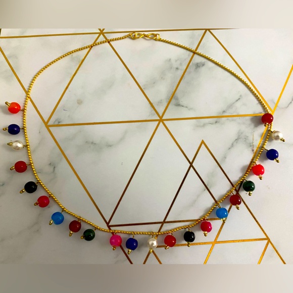 Very pretty multi color beads necklace. It is not very big and stays around neck just like choker.