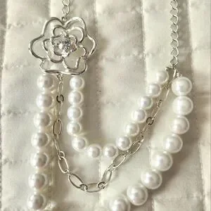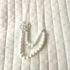 silver and white necklace