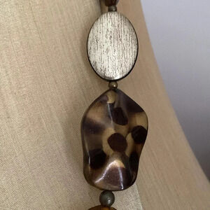 Arcrylic bead necklace with animal print and faux amber and goldtone beads. Pls see photos for details. Lightweight. In excellent condition.