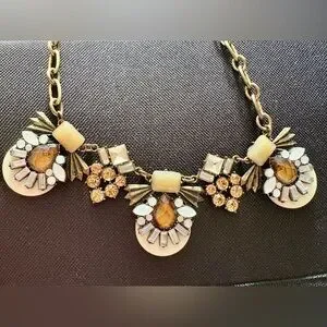 This stunning statement necklace features a blend of gold and cream tones, perfect for adding a touch of elegance to any outfit. Ideal for special occasions or everyday wear.