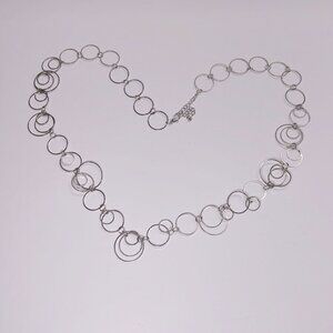 Silver rings connected as single strand which is longer necklace - see measurements in photo.