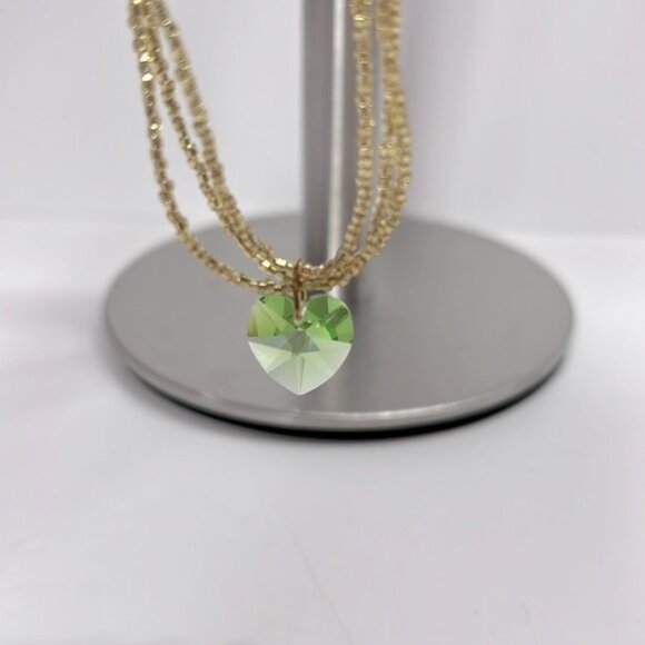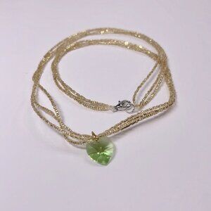 Yellow beads with green heart pendant. Handcrafted as hobby