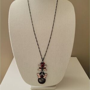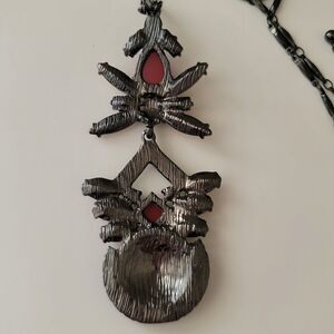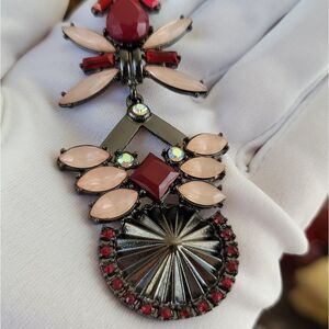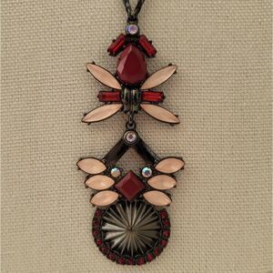 Necklace Gunmetal Tone Red Pink Geometric Necklace with Pendant #0087