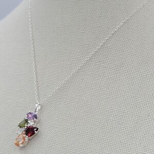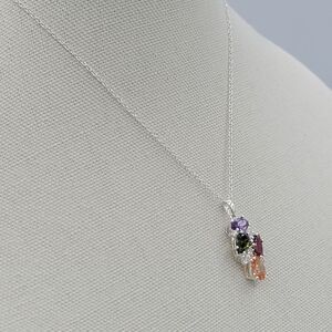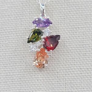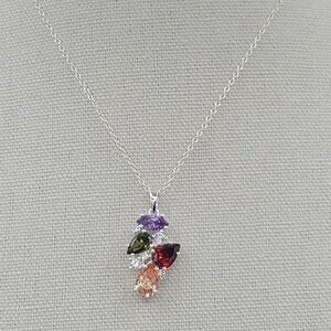 Necklace Multicolor Crystals Silver Tone Pendant With Chain & Extender #1035
