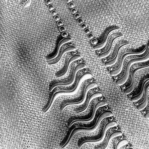 Each bar measures 2.5 cm in length The curves of the wavy bars catch and reflect light.