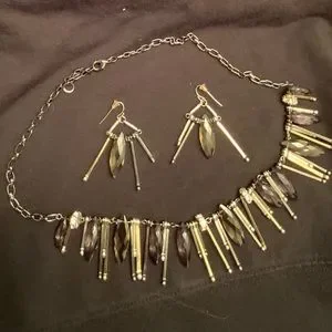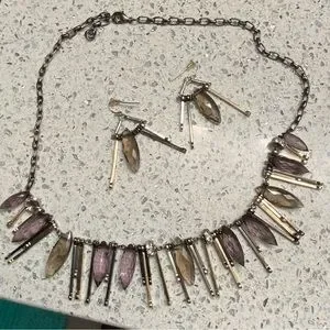 Amethyst and topaz crystal necklace and earring set. Very unique set.
