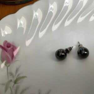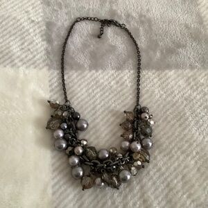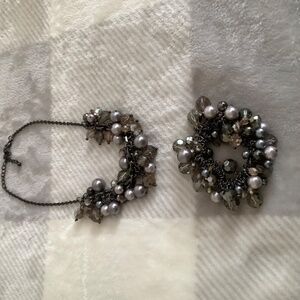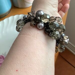 Gunmetal, faux pearls and stones, stretch bracelet