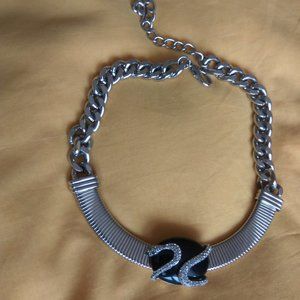 18-inch snake necklace with green stones eyes.