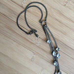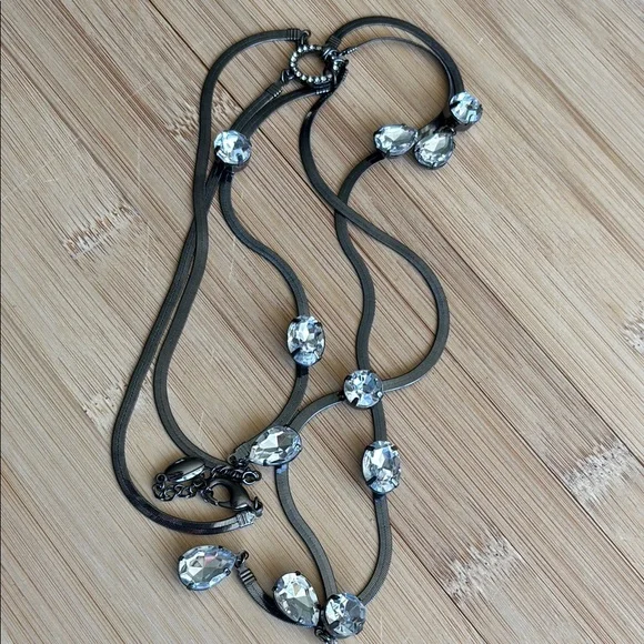 Unique long vintage jewelled necklace on a serpentine chain. This is a long necklace with danglers