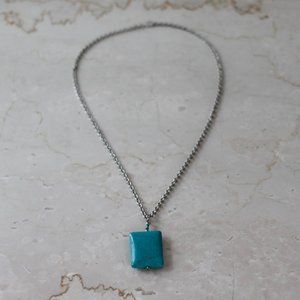 Silver necklace with turquoise pendant. Necklace is not ajustable and the pendant cannot be removed.