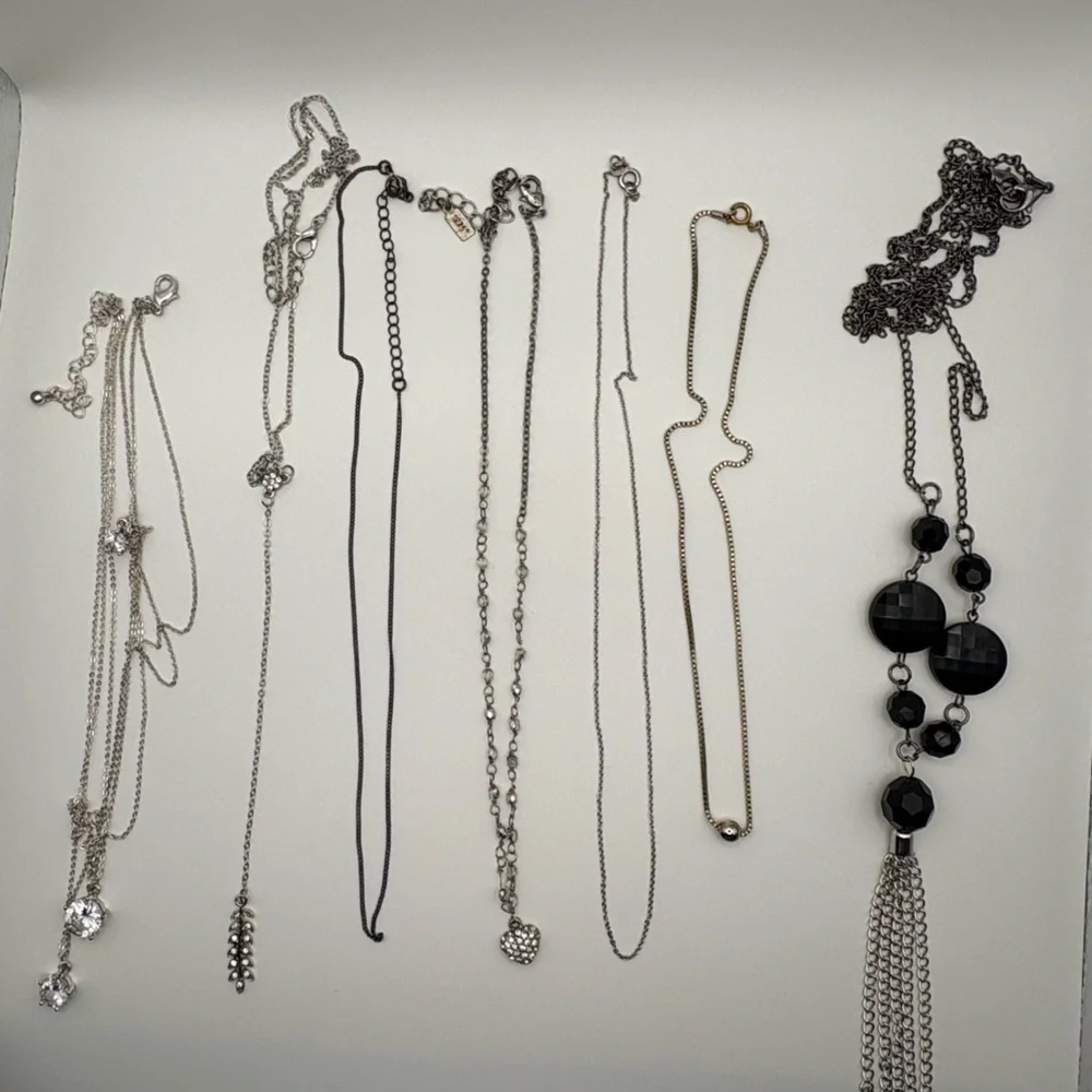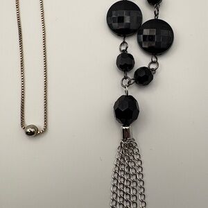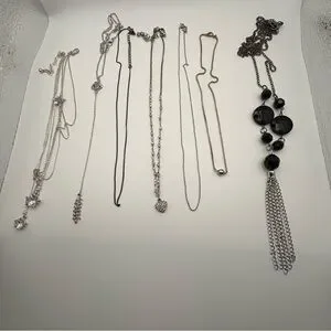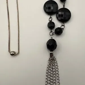 This elegant necklace set features a stunning combination of black and silver tones, perfect for any occasion. The intricate design adds a touch of sophistication to your outfit.
