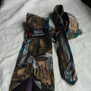 100%. Made in the USA. 56" total length. 4" widest point. Teal/hunter green/browns/gray/black outlines - refer pictures.