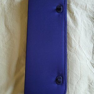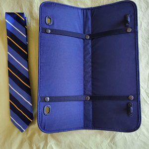 New navy tie travel case/organizer. New/never used. Prevents wrinkling. Hard nylon exterior. Length:15 inches (38 cm). Width: 5.5 inches (13 cm). Width when open: 12 inches (30 cm). Tie not included.