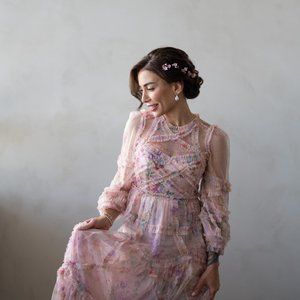 Link to the dress on website - https://us.needleandthread.com/products/floral-diamond-ruffle-gown-topaz-pink