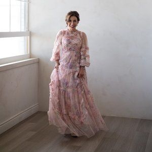 Floral Ruffle Gown in Topaz Pink. Excellent condition. Only worn once for a photoshoot.