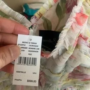 Beautifully decorated in oversized iris flowers, ditsy blooms and lace-inspired motifs, this romantic dress is designed with layers of soft tulle and tiered with ruffle trims.
