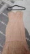 Stunning champagne maxi dress with glitter polka dots and trumpet style hem. Hidden back zipper closure. No size tag and it's pretty snug on my size small mannequin so it's likely either a 0 or 2. Please check measurements. A couple unnoticeable snags in the tulle on the back, and a small tear in the tulle on the front hip area (see last two photos). The tear is pretty camouflaged. In otherwise excellent condition.