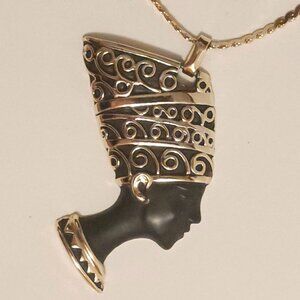 Nefertiti Bust Necklace Gold Tone Ancient Egyptian Queen With Chain