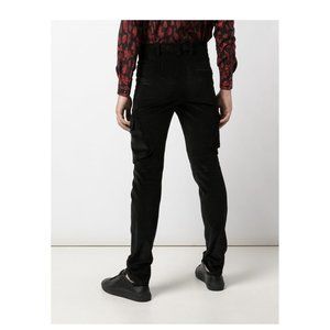 Black cotton blend corduroy skinny trousers from Neil Barrett featuring belt loops, a concealed front fastening, two front pockets, side flap pockets, side zipped pockets and a back pocket.