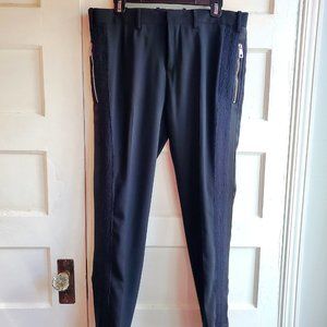 Beautiful tuxedo pant with silk stripe complimented by a faux fur stripe. They are a beautiful pant. Length sits just at the ankle. Slim fit pant European 48 which is a US 32. Due to the pant being slim fit, it fits more like a 30