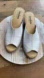 Neiman Marcus White and Tan Espadrille Slip-On Sandles