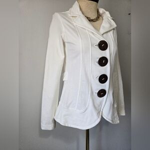 Neon Buddha Off White Sweater Jacket with Oversized Brown Buttons. Size XS
