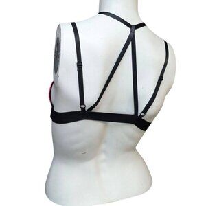 Neon pink fishnet bra. Tag says medium, fits cup size xs, s, and m, but I'd say ribcage is about a small.