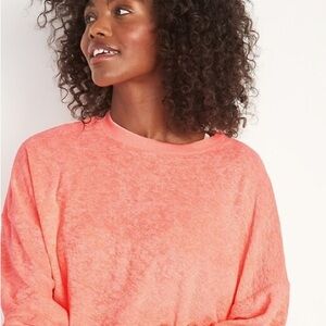 Never worn. Old Navy neon orange terry-feel sweater. Slightly cropped. Size large.