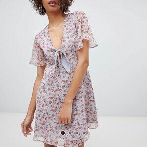 Blue floral Neon Rose Sundress Dress - tie front dress from ASOS Size L Pretty good condition