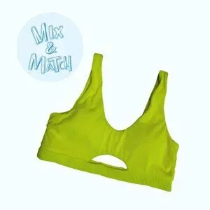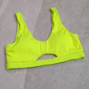Neon yellow ribbed tank style bikini top with cutout detail. Similar to 2nd photo but not exact match.