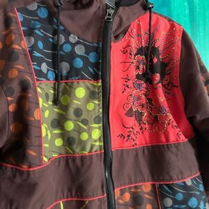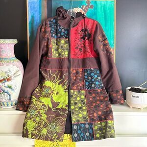 Nepalese Boho Hippy Festival Patchwork Hooded Fleece Lined Jacket 42" L