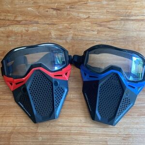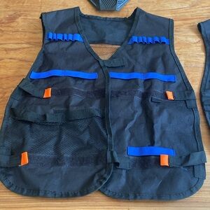 Bundle includes two artillery vests and two Rival team masks. All previously used and enjoyed by my son and friends in Nerf Battles. They have scuffs, show signs of use but nothing is broken or missing. Will also be posting all of our previously used Nerf so search my listings and bundle to get a deal.