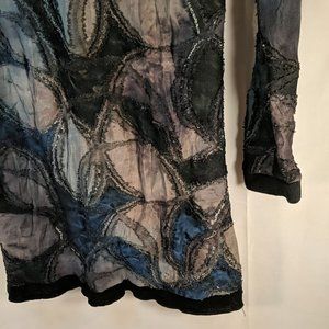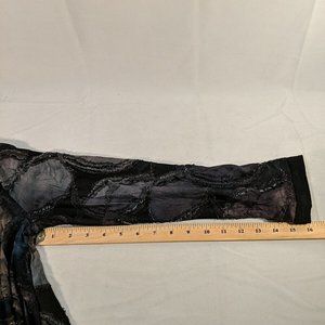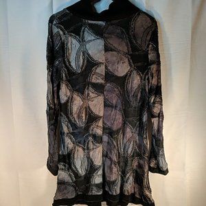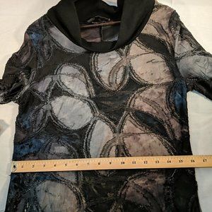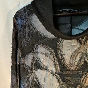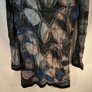 Ness Blue Brown Long Sleeve Tunic Shirt Top Womens Medium M Black Floral