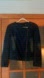 Edgy and versatile blue denim jacket. Two sets of zippers along front which gives you the option to use the asymmetrical zipper for a more fitted look, or the straight zipper for a more relaxed boxy look. Soft faux leather accents that feel like real leather. Good size pockets. Dark wash denim with distressing. Fully lined. Well made piece. Perfect denim jacket for the cooler months. See measurements and tags in photos.