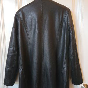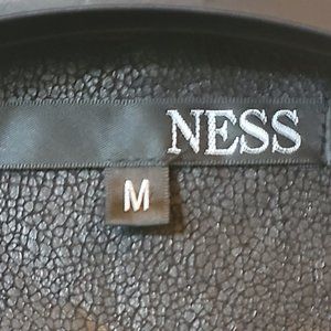Ness, EUC, Size M, textured faux leather black jacket, soft shoulder pads to provide structure, with hook and eye closure as well as flat silver button details although they're not buttons. Clean lines with no pockets. Nice structure. No visible marks, stains or tears.
