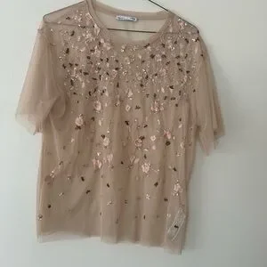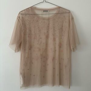 Net Embroidered Cream Top