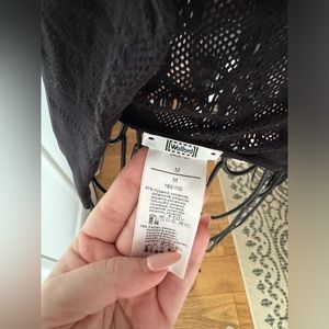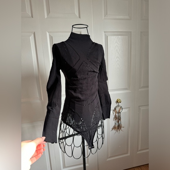 Black long sleeved netted body suit, super cute with jeans or a skirt and fits perfect. The mesh makes this very perfect for a cool summer night out or under a nice spring or fall jacket