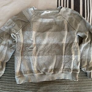 Cotton blend sweater with subtle stripes in cream and tan/light brown.