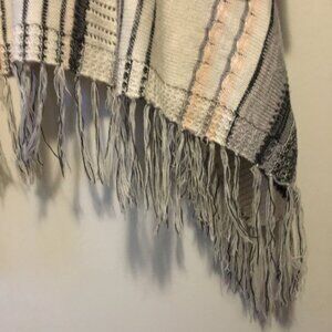Neutral Cream, Grey, Black and Pink Arizonian Bohemian Tasseled Shawl